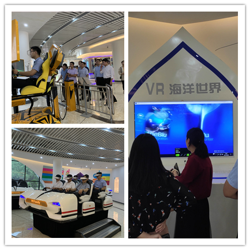 隨后參觀體驗創(chuàng)客研學(xué)體驗中心,楊夢婷向我們介紹了VR海洋、VR旅游、VR人體、模擬賽車、星際飛船等高科技體驗設(shè)備,每一位新員工參與其中,體驗高科技帶來的改變。