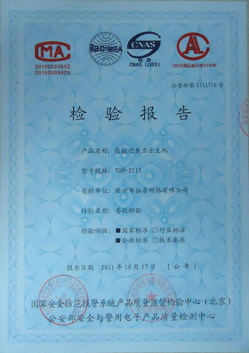2011年10月17日,由我公司自主研發的監控巡查衛士主機通過國家安全防范報警系統產品質量監督檢驗中心及公安部安全與警用電子產品質量檢測中心的聯合檢測,檢測結果顯示,該主機所有技術指標均已達到國家規定標準,并出具了聯合檢測產品檢驗合格報告。 近年來,在全體員工的不懈努力下,公司技術實力不斷增強,科技研發能力顯著提升,多項研發成果獲得國家專利證書并在應用中得到推廣。此次監控巡查衛士主機產品的研發成功再一次證明了公司的自主研發水平和能力。 據了解,巡查衛士產品的成功研發最初源于工作人員的一個猜想,在一步步的實踐中最終形成產品并得到應用。希望全體員工在以后的工作中不斷創新,遇到困難勇于直面,開動腦筋、集思廣益,一個瞬間的想法可能就會為公司帶來一個新產品的誕生,開辟更廣闊的市場。