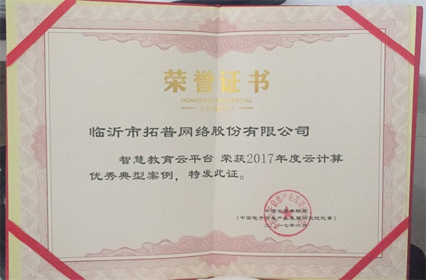 | 熱烈祝賀智慧教育云平臺榮獲2017年度云計算優秀典型案例 |