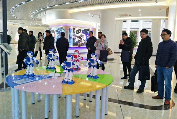 上午合作簽約儀式結束后,在園區工作人員的帶領下,與會教師參觀了高科技互動體驗展廳、臨沂智慧教育創客活動中心,在臨沂智慧教育創客中心,大家對充滿科技感的互動體驗充滿了興趣,紛紛在VR海底世界、 VR人體奧秘、智能機器人前駐足體驗高科技帶來的新奇,并對拓普網絡有限公司的科技實力給予高度評價。