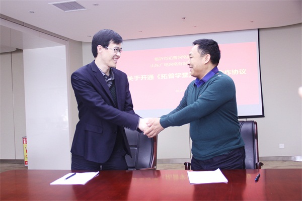 3月5日,臨沂市拓普網(wǎng)絡(luò)股份有限公司與山東廣電網(wǎng)絡(luò)有限公司臨沂分公司就開通《拓普學(xué)堂》欄目達(dá)成合作意向,雙方負(fù)責(zé)人在公司會議室簽署了合作協(xié)議。以后學(xué)生可以通過臨沂廣電網(wǎng)絡(luò),在家用電視免費(fèi)觀看《拓普學(xué)堂》的名師微課了!