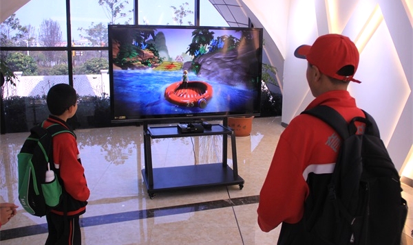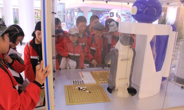 與下棋機器人對弈 在機器人項目前,學生們被機器人靈活的舞姿深深吸引,邁克爾·杰克遜的音樂一響起,機器人便能跟隨音樂起舞,“老師這個機器人真是太棒了,不僅能跟上音樂節奏,他們的動作也比我們人類做得整齊!”學生們對機器人的舞姿評價道。在模擬體驗區,學生們在體驗模擬賽車駕駛、VR單車、民航模擬飛行、體感游戲中更是收獲了快樂與知識。因為在每項研學體驗環節,都設置了相應的興趣作業,孩子們在體驗中帶著疑問去“玩”,更是提高了自身的探究能力。這種寓教于樂的學習方式更是吸引了眾多學生前來參加。
