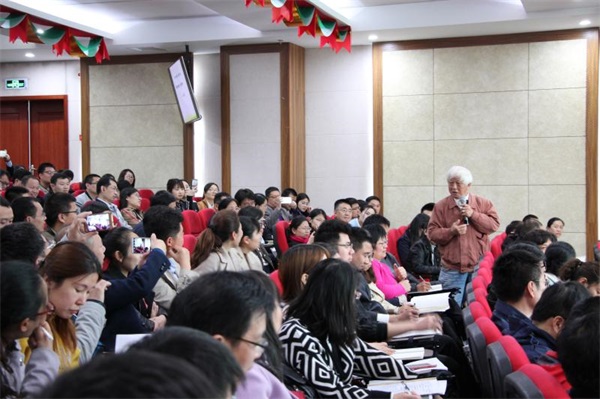 上午八點半,活動正式開始。山東省教研室信息中心主任、科學教研員盧巍老師首先對山東省教育科學規劃課題《青少年科技創客教育內容構建與實施路徑研究》做了全面細致地解讀。隨后,在萊蕪市苗山中心小學欒兆清校長介紹下,致力于讓萬花筒走進課堂教育,喜歡變廢為寶的李鴻寬專家為全體教師做了萬花筒的創客思維演講。李鴻寬老師曾被索尼公司稱為“中國萬花筒第一人”,在李鴻寬老師機智幽默、全程互動的課堂上,全體教師從歷史、物理以及數學角度全面認識了萬花筒的制作原理。