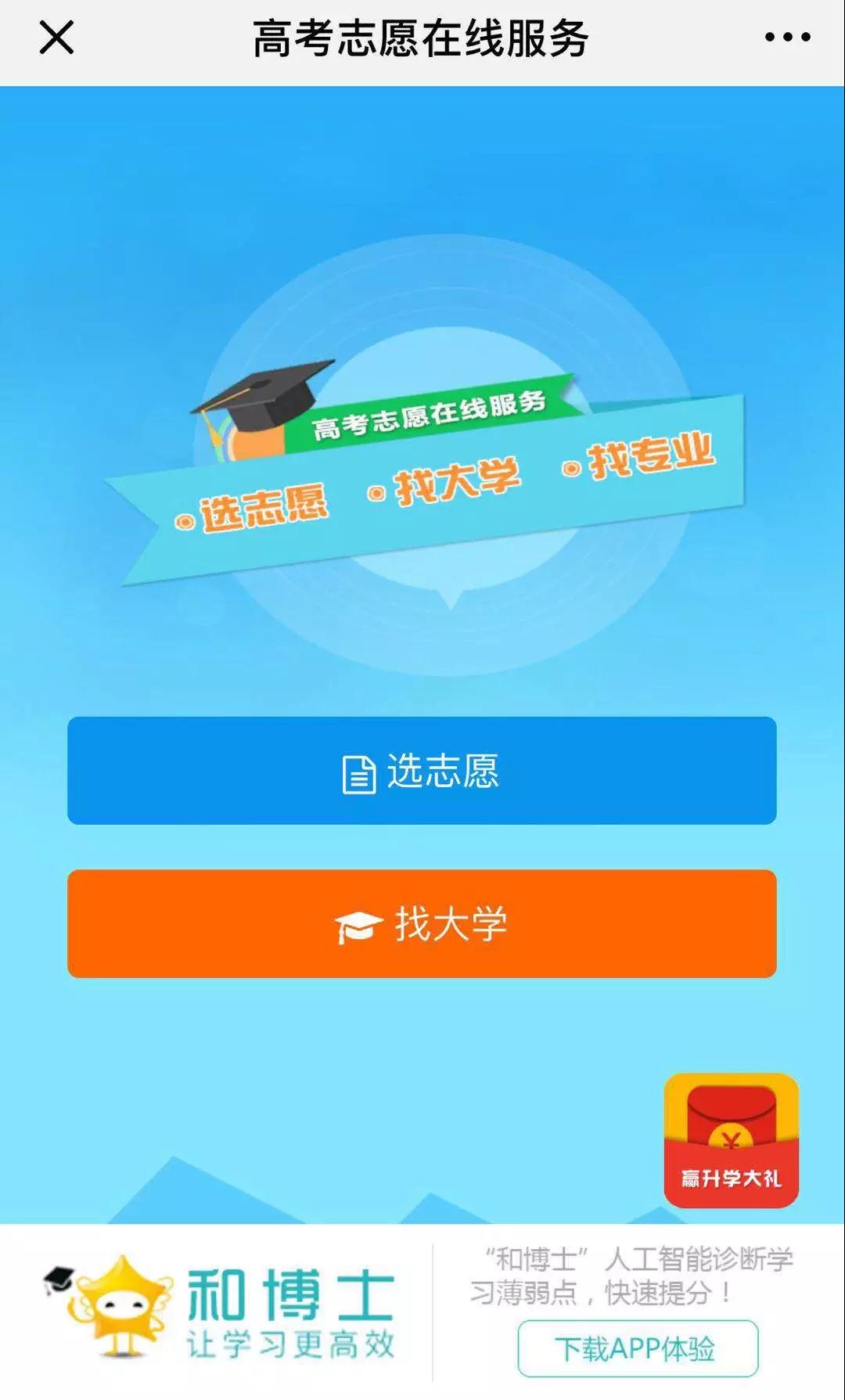 高考志愿是每個學生進入大學的關鍵一步,因為高考志愿填報失誤,我們每年都會看到許多學生白白葬送掉三年努力。為此和博士隆重推出高考志愿在線服務系統。在和博士教育公眾號菜單中選擇『高考活動』點擊“高考志愿填報”即可進入。