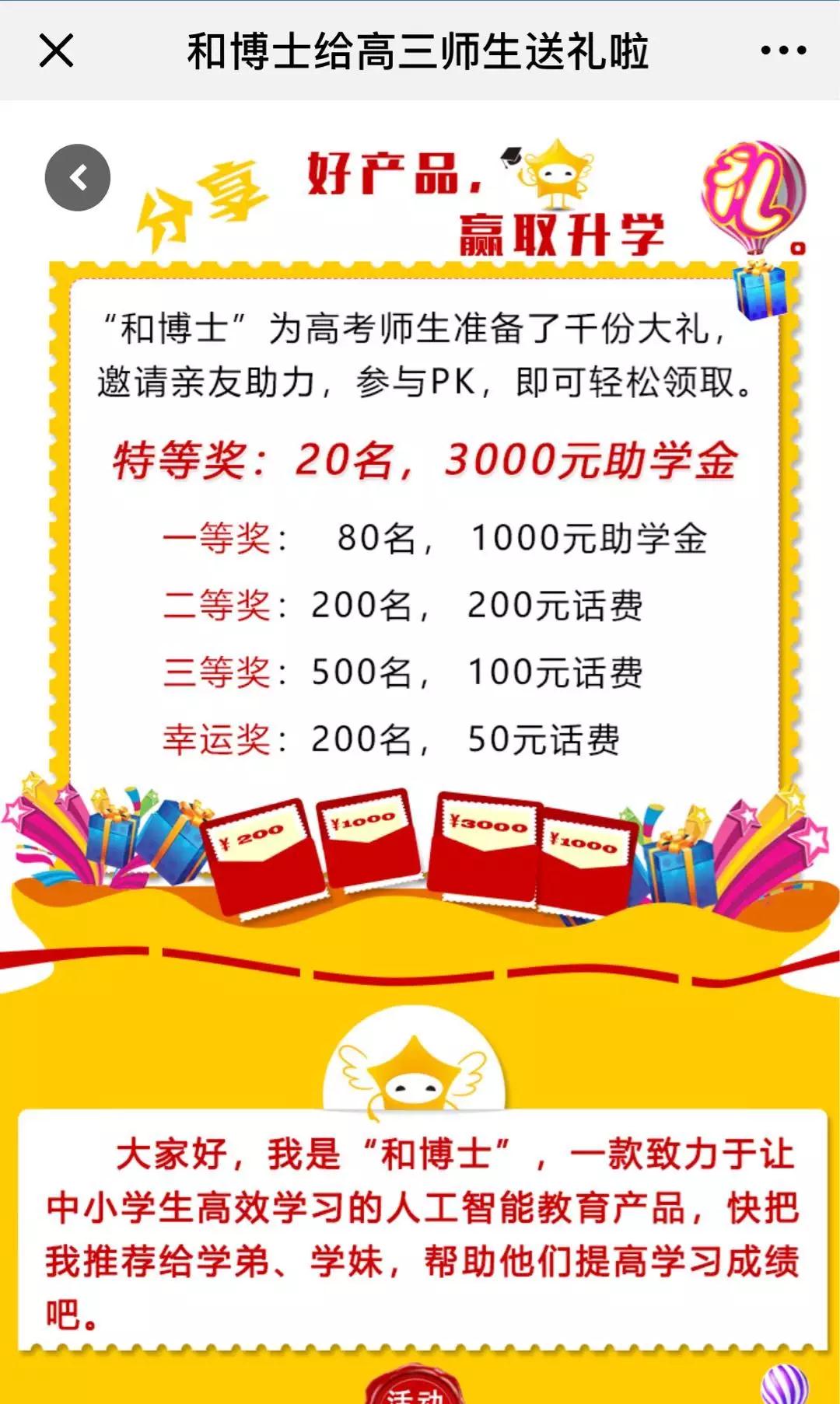 通過和博士教育公眾號點擊『贏助學金』就有機會領到25萬助學金和話費,快來參加活動吧!