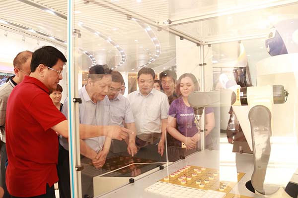 考察團一行在山東智慧教育創客活動中心體驗