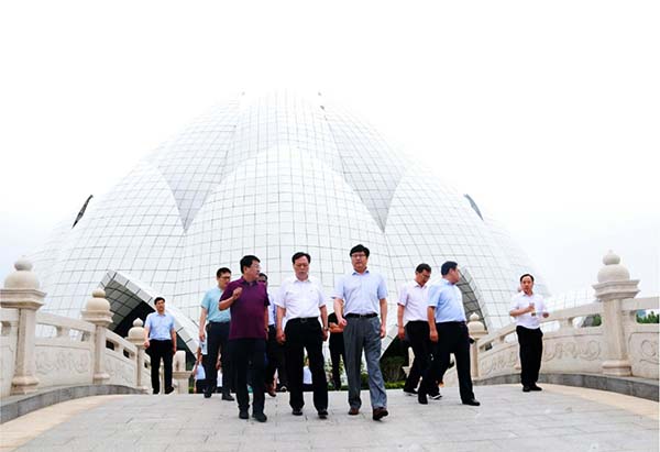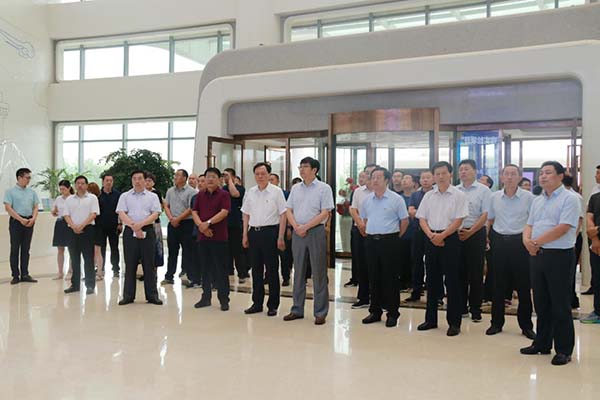 7月3日上午,煙臺招遠市市委書記、經濟技術開發區管委主任賀業增一行到國家中印科技國際創新園參觀考察、市政府黨組成員、開發區黨工委書記、管委會主任陳一兵陪同。