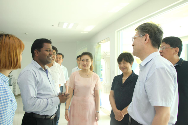 (與印度專家交流) 會議期間,山東省教育廳副廳長白皓、臨沂市副市長張玉蘭、臨沂市教育局黨委書記、局長尹傳斌一行還在公司董事長王嵐保的陪同下參觀園區(qū)研發(fā)中心,體驗山東智慧教育創(chuàng)客活動中心,視察研發(fā)中心、大數(shù)據(jù)中心和教育培訓基地等地,聽取了關(guān)于“臨沂市智慧教育云平臺”的相關(guān)報告,并與公司印度專家展開親切交流。白皓一行對拓普智慧教育云平臺充分整合優(yōu)質(zhì)教育教學和學習資源、在線個性化教學教研、個性化學習和教學管理、教育教學質(zhì)量和學生綜合素質(zhì)能力測試評價等多項功能給予高度評價。