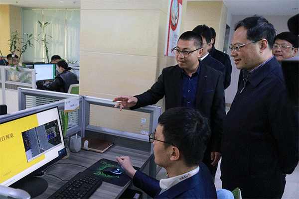 于杰副省長一行首先在公司智慧教育創新中心展廳聽取了公司發展歷程、主營產品、國內國際合作等相關情況介紹,與印度專家進行了親切交流,參觀了入園企業六牛科技等公司,了解國際技術與人才合作、軟件開發應用等情況,并詢問了在園區進行研學旅行的學生相關問題。于杰副省長一行對拓普公司定位層次鮮明,借助國內國外力量全力發展人工智能智慧教育產業的做法表示贊賞,對拓普公司致力于人工智能技術在教育信息化領域所取得的成果給予了高度評價,