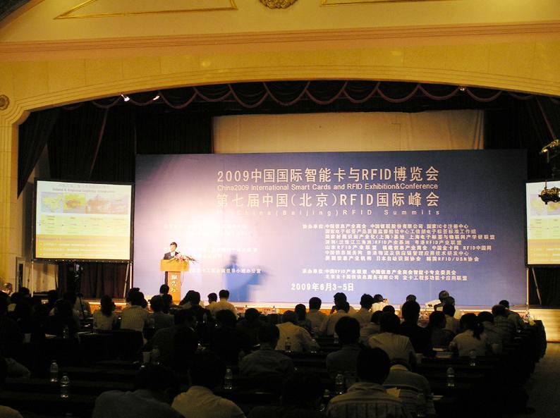 北京展覽館 會議日程 相關論壇 ![]() 國家金卡辦主任、中國RFID產業聯盟理事長張琪致開幕詞 2009年6月3日至5日,公司參加了2009中國國際智能卡與RFID博覽會和第七屆中國(北京)RFID國際峰會。這次展會共有來自中國(兩岸三地)、英國、德國、日本、韓國、新加坡等國家的約150家智能卡和電子標簽(RFID)相關企業參展,總計約600人參加了開幕式。